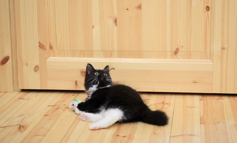 桃ちゃんのぬいぐるみは今でもそぼろのお気に入りです。でも、すぐにどこかへ蹴り込んでしまうので探すのが大変っ(汗)