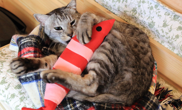 のんきにハラさ出して寝てるから、ボンって置いてやったさよ!
