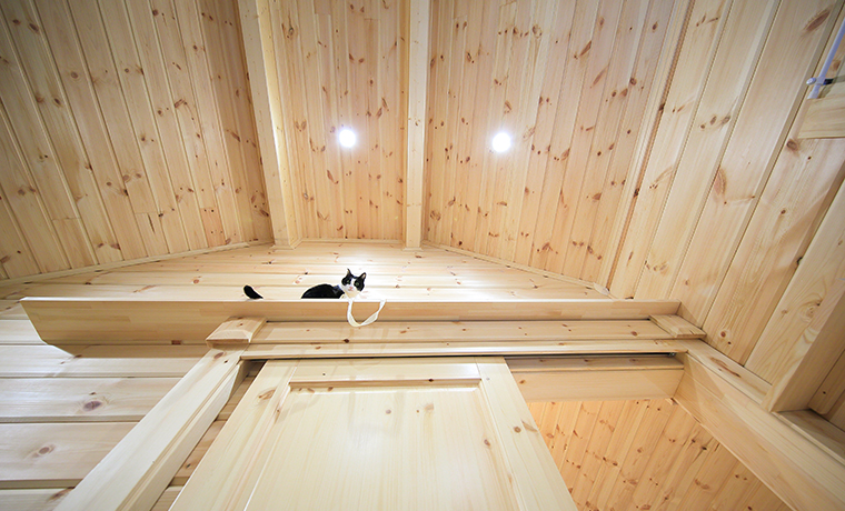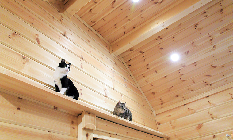ログハウスを建てた際、大工さんに造作でつけてもらった「キャットウォーク」。